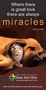 ‘Where there is great love there are always miracles,’ mentions the board put outside the Oncology OPD in Ruby Hall Cancer Centre, Pune. “This quote on the board inspired us not to give up on my father’s treatment,” said Amar Puramwar, son of 63-year-old cancer survivor.